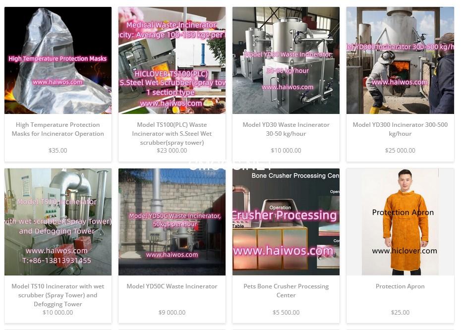 of the installed waste incinerators, including all the parts and components (e.g., burners,