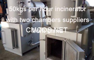 50kgs per hour incinerator with two chambers suppliers from china *Aveage 50kgs per hour *Double chamber and double burner *900liters primary combustion chamber *Italy burner *Stainless steel chimney Model YD-50 Burning Rate Average 50 kgs/hour Feed Capacity Average 150 kgs Primary Combustion …